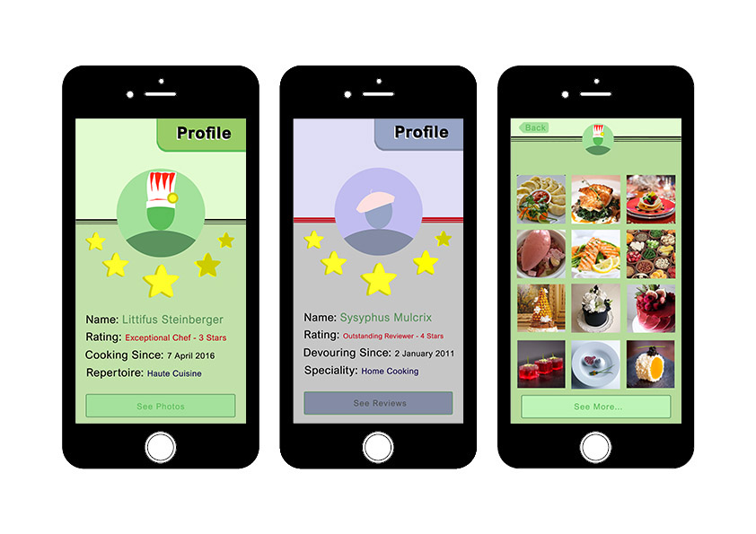 Every account has an MMR tied to it, the MMR is a number which designates the “rank” of a chef or “client”. The main attraction is “stars” that separate the main leagues of people's MMR. Hopefully, the competitive aspect of this skill-based ranking, the aspect of getting to eat cheap, good quality food, and bettering one’s cooking skill with honest reviews from total strangers create enough of an incentive for users to use the service (although this is a niche market). Additionally, getting into the higher ranks could offer increasingly useful gifts, anywhere from special profile icon unlocks, to receiving cooking utensils (top 100), to a paid internship at a professional restaurant (top 10).