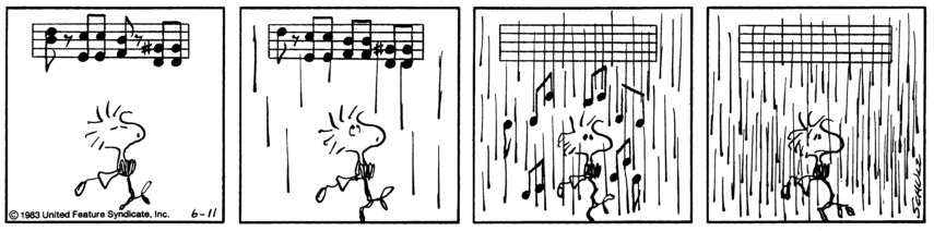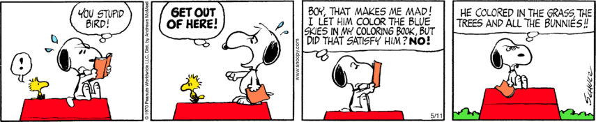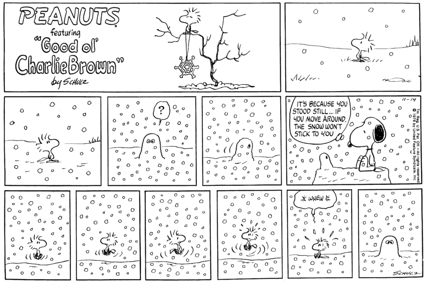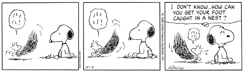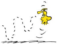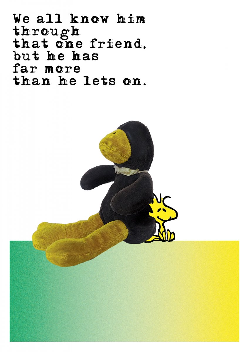 Graphic gradients aside, this project was actually based on the characters from the Charlie Brown comics; so after a rather small time frame of 30 seconds I knew that I had to choose Woodstock, I knew there was some sort of proximity with our characters. I still had to better understand his design and attitude, which is why I went and collected a whole set of illustrations of him, but also some of my personal favourite strips of him.